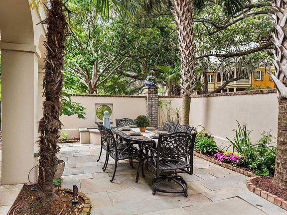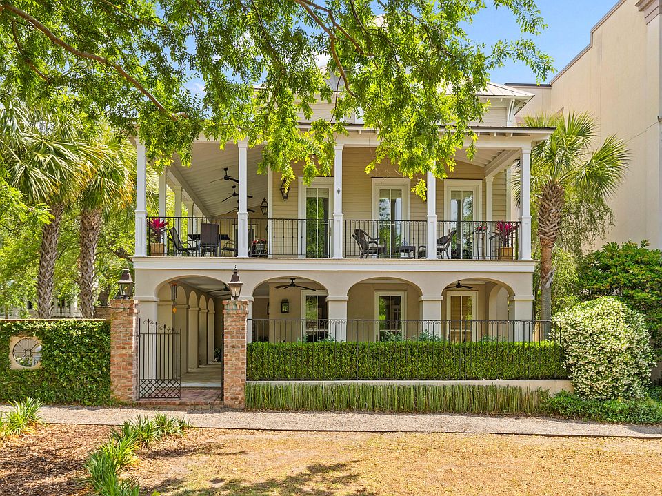 Luxury lakefront living in I'On--Mount Pleasant's premier neighborhood known for its walkable streets, timeless architecture, and vibrant Lowcountry lifestyle. Set on a coveted corner lot, this elegant five-bedroom, four and a half bath residence is designed to maximize both comfort and style. Thoughtful architectural details and refined finishes create a home that feels sophisticated yet welcoming. Designed for both everyday comfort and effortless entertaining, this 4,450 square foot home offers over 2,400 square feet of covered outdoor space, including a picturesque open-air courtyard perfect for al fresco dining or morning coffee. Gas lanterns and a wrought-iron gate set a graceful tone at both the front and lake-facing entrances, while beautifully landscaped groundsenhance privacy and curb appeal. On the first floor, two private suites offer distinct appeal one accented with rich Caribbean Pine floors and the other with lake views. A stylish bar and serving area make entertaining seamless, while the open-air courtyard creates a natural connection between indoor and outdoor living. A brand-new HVAC system ensures year-round comfort and efficiency, and direct access to the two-car garage provides everyday convenience. Upstairs, accessible by both staircase and elevator, the light-filled main living area features custom crown molding, and multiple sets of French doors that open to a wraparound porch overlooking the lake and amphitheater. The chef's kitchen is a true showpiece, featuring a brand-new 48" GE Monogram Professional Range alongside white cabinetry with glass fronts, a striking Sapele wood island, Virginia Mist granite countertops, and Carrara marble backsplash. The kitchen flows into a cozy sitting area with a gas fireplace, a defined dining space, and a grand living room with lake views and direct porch access. The second-level primary suite is a luxurious retreat, complete with a wrought-iron Juliette balcony, spa-inspired bathroom with Caledonia porcelain finishes, walk-in closet, and convenient laundry room access. The third floor offers a versatile living space with two additional bedrooms connected by a Jack-and-Jill bathroom, a built-in desk area ideal for studying or working from home, and a spacious media or family room with custom built-ins. Caribbean Pine floors extend through the hallway and bonus/media room, enhancing both style and continuity. A professionally insulated walk-in attic provides additional potential for a second primary suite, home gym, or creative studio without sacrificing storage space. Enjoy the I'On lifestyle with scenic walking trails, parks, a neighborhood dock and boat ramp. Walk to I'On Square's shops, cafés, and neighborhood events.