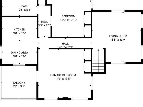 Full updated bathroomEat-in kitchenBalcony accessAbundant natural lightRange and refrigeratorLinen closet