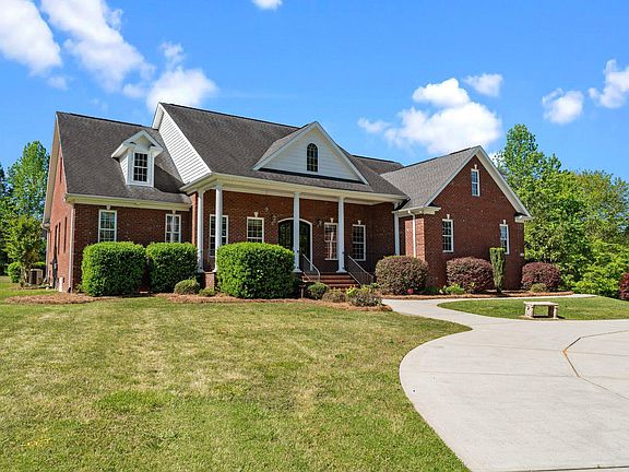 Luxury, flexibility, and outdoor living come together in this beautifully designed brick ranch offering bonus space, multiple garage options, and peaceful pondside patios in desirable Sanford NC. This thoughtfully crafted home features 3 spacious bedrooms and 2.5 bathrooms on the main floor, including a private ensuite retreat. The upstairs includes three large bonus rooms ideal for a home office, fitness area, or hobby space, plus a full bath and walk-up access to a large unfinished attic. Enjoy outdoor living with two patios, one off the main home and another by the detached 2-car garage with a cozy fireplace and tranquil pond view. Relax on the charming rocking chair front porch or take advantage of both attached and detached garages for added storage or workspace. Located in Sanford, known for its historic charm, vibrant downtown, and convenient access to Raleigh, Pittsboro and the Research Triangle, this home offers the ideal blend of comfort and convenience.