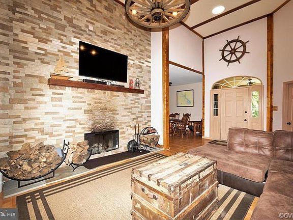 Beautiful 4000+ sq ft home in prestigious Windwood Coves subdivision. 4BRs, 4BAs, main level master. Open floor plan, double side wood burning fireplace. Hardwood floors on the main level. Screened in porch on rear. Full finished basement with super cool man cave! House is being sold fully furnished. Located just short distance from one of the many common areas within the community. Boat slip conveys. Community offers beach, pavilion, tennis courts, basketball courts. Located close to restaurants and shopping.