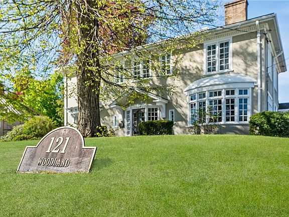 Stately and elegant Manor home in Woonsocket's prestigious North End, a small enclave on MA border that is home to some of this country's most magnificent architecture. Built during the height of the Industrial Revolution, no expense was spared in the design and construction of these homes whose styles emulate classic European architecture that is present with every home here. A spectacular area to walk the streets and take in the views. 121 Woodland is an exceptional property in that it is grand but also approachable. Clearly designed with entertaining in mind, the layout translates nicely to today's living where families want personal space and room to move.The layout includes approx 3500 SF of above grade living area, 12 room, 5 Bedrooms, 4 full baths, and 2 half baths. Of these rooms are updated kitchen with ample work space, Formal Dining Room, Library with fireplace, Formal parlor with fireplace, 4 season sunroom, and grand foyer. On 2nd for is Master BR Suite, 3 Guest BR, Full Bath, and Sunroom. On 3rd floor is an Au Pair or 5th Bedroom. Classic details are found throughout with high ceilings, built-in cabinetry, hardwoods floors throughout,and trim moldings.The finished basement houses Bar/Pool room, 1/2 bath, Laundry area. Completing this home is beautiful Inground Pool, Cabana with fireplace, plumbing and electricity, and lovely grounds.This property has been extensively updated and well maintainted and extremely energy efficient with a LOW maintenance exterior.