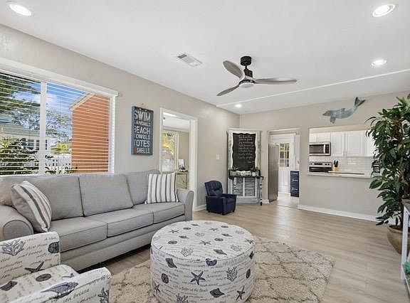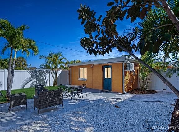 AWESOME BRAND NEW TOTALLY UPDATED UNIT SET UP AS A 2 BEDROOM AND AN OFFICE CAN BE 3 BEDROOM, IN A 3 UNIT PROPERTY, HAS A FULL PRIVATE SCREENED IN ROOM AND OUTSIDE FRONT AND REAR PATIO. WITH OUTDOOR FURNITURE , FULL KITCHEN, FULL BATH ROOM, DUCTLESS AC, WASHER AND DRYER , CEILING FANS IN ALL ROOMS ,FULLY FURNISHED WITH EVERYTHING YOU NEED, OFF STREET PARKING SPACE,INTERNET AND SMART TV , ALL YOU PAY IS ELECTRIC, 1 BLOCK FROM BEACH!