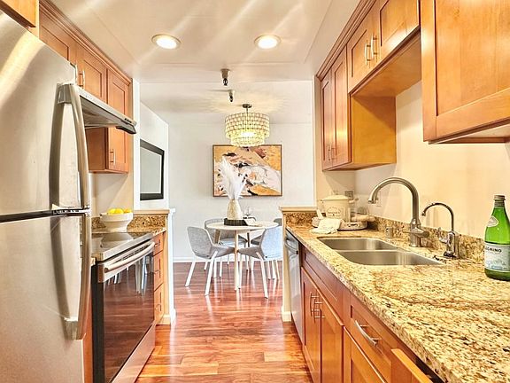 The modern kitchen features granite countertops, wood cabinetry, and sleek stainless steel appliances -- ideal for cooking and entertaining. The spacious bedroom offers privacy and abundant natural light. Additional highlights include gleaming hardwood floors, central A/C, and ample storage.