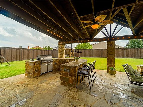 Pride of ownership is evident in this well maintened 5 bedroom,3.5 bath, that has a space for everyone!You're greeted with warmth and elegance the moment you step inside the two story grand foyer. Welcomed by Custom Iron door. Once inside luxury awaits with custom finishes throughout, to include stunning designer wood work and hardwood floors. Large family room opens to a designer kitchen with custom cabinets and paint work, 3 car garage, custom iron gate and a Security system camaras.This home is perfect for entertaining friends and family, with a covered patio with outdoor kitchen and fireplace. The backyard contains fruit trees, Apple, Pear, Plum and Pecan.Includes the safety of an inground Tornado Shelter