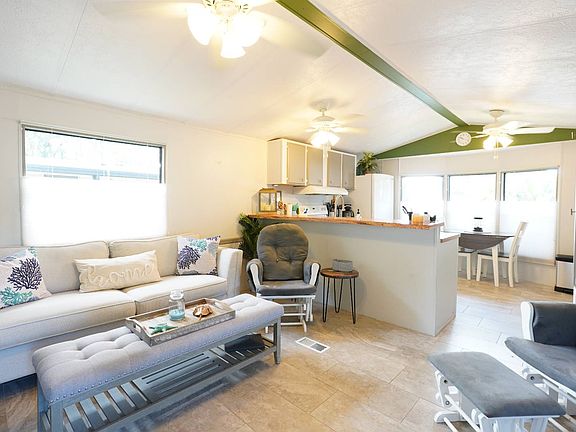 This is it! 2 Bedroom, 1 Bath, 672 sq. ft., in a very PET FRIENDLY 55+ retirement community. Lot rent is only $585 a month & it is located less than a mile to the beach! You better act fast because every home I list in this park sells quickly and this is a steal of a deal. Very well taken care of and the perfect beach house. All appliances are in great shape. The kitchen feature's a range/oven, microwave, refrigerator, & dishwasher. There are five ceiling-fans throughout and the home is coming completely turn-key. Everything you need to get started. Dishes, silverware, furniture, beds in both rooms. The washer & dryer are located inside and both are staying. The home is in Anclote Acres Mobile Home Park, a 55+ retirement community and not in a flood zone. It is a privately owned park right around the corner from Anclote River Park and just north of Tarpon Springs. It is also right by Miss Vicki's on the River! One of the best little beach bars around! Beaches: Residents can enjoy daily beach outings, swimming, kayaking, boating, fishing, wildlife (including dolphins and manatees) and sunset views. Fred Howard Park Beach: A beautiful beach with picnic areas, playgrounds, and walking trails. Local Attractions: Explore nearby gems such as Anclote Key Preserve State Park, famous for its historic lighthouse and stunning natural beauty. Tarpon Springs Sponge Docks is known for its rich Greek heritage, this area offers unique shopping, dining, and cultural experiences. Nearby Cities: The bustling cities of Tampa and St. Petersburg are within a short drive, offering shopping, dining, and cultural experiences. Orlando is only about an hour and a half away. Grocery stores, medical facilities, and local markets are conveniently close, making daily errands effortless. I REPEAT!! THIS HOME WILL NOT LAST LONG SO YOU BETTER ACT FAST. Call the agent listed below. ***DISCLAIMER: The information in this listing is believed to be true and accurate and has been provided by the seller. SLR Mobile Home Sales LLC cannot guarantee or warrant the accuracy of this information or the condition of any property. Since the mobile home is being sold AS IS, we recommend that you inspect any home that you are interested in purchasing and recommend that the home be independently verified by appropriate professionals.