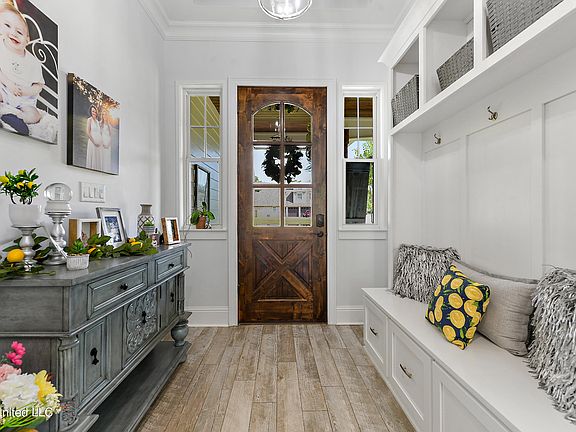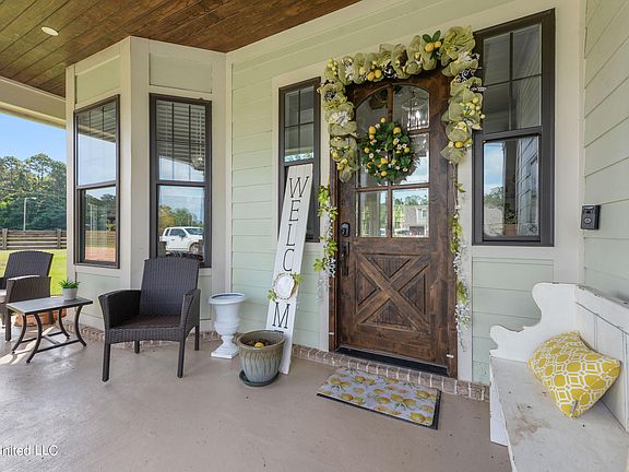 Welcome to this beautiful Craftsman Style custom home built in 2019 by local builder Stuart Jones. Home features open floor plan with gorgeous tongue & groove inlayed 10' ceilings, 11' in Kitchen & Dining areas with beautiful wood beams, wood plank porcelain tile flooring, 8' doors, built-ins, crown molding and two fireplaces. The kitchen boasts white quartz counters & subway tile backsplash, stainless double ovens, refrigerator, glass cook top with pot filler, porcelain farm sink and dishwasher in the island with breakfast bar, and Butler's pantry. Dining area includes dry bar that can also serve as a buffet. Spacious Master suite with large picturesque windows, featuring a transition foyer between bedroom & bath area that includes a luxurious shower with a light sea green glass subway tile surround & mosaic flooring, stylish clawfoot tub, double vanities, lots of storage, generous dressing/closet area that connects to a private laundry room. This home doesn't stop here it has three guest rooms that are a children's paradise or can easily be re-designed to your taste. With the third guest room and a half bath located on the second floor for a more private bedroom or bonus room. The kitchen is centrally located between three rooms; a bonus area, family & dining room all with easy access to the covered brick accented back patio, which features a wood burning fireplace and patio daybed swing to extend your entertainment space. Double car garage with epoxy coated flooring and additional overhead rack storage. Centrally located and within Oak Park School district, close the Gulf Islands National Seashore Park, medical, shopping, museums, restaurants, and quick access to HWY 90 & I-10.