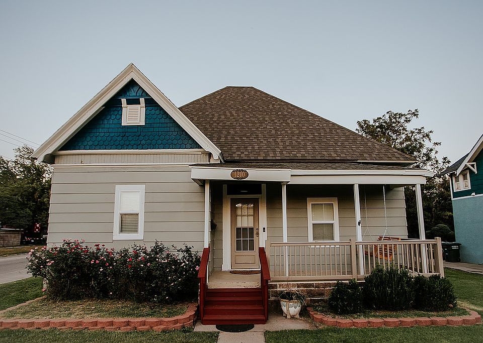 The front porch swing is perfect for unwinding in the evenings, surrounded by beautiful rose bushes that bloom all season long. It's a peaceful, welcoming space that feels like home the moment you arrive.