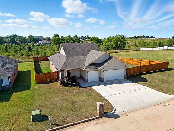 Welcome home to Coffey Dr, Perry! Coffey drive provides the quick commute to I35 and short distance to HWY64 (Fir St) and the historic downtown square. Many new construction homes appreciating in value and this home overlooks a pasture for a more "country vibe". The 1,737 sq ft floor plan is FANTASTIC with a front office space, open concept living w/wood texture tile throughout, LARGE island w/1 3/4" granite, formal dining area, gas fireplace split floorplan, and spacious primary w/direct access to laundry room. Exterior amenities include a professionally built privacy fence, backyard covered patio, THREE car garage and quaint front porch. Why pay the cost of new construction when you can get one 2 years old AND move in ready? Call today!