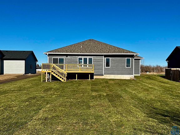 New construction home with 4 bedrooms, 2.75 bath in Elk Point’s Country Club Estates. This ranch style home has 1,423 square feet on the main boasting an open concept kitchen, living and dining with luxury vinyl plank flowing throughout. The living room has a sleek gas fireplace and ample natural light. The kitchen has a large island, appliances included and a corner pantry. Custom upgrades in the kitchen include a waterfall edge on the quartz countertops, tile backsplash and a gas range The master bedroom has a upgraded carpet, ceiling fan and a walk-in closet. The master bath has a linen storage closet, double vanity, lighted mirror and a step-in shower. The main floor bedroom has a double closet and ceiling fan. The laundry room is also on the main conveniently located just off the garage. The basement is finished with a large family room with luxury vinyl plan, two bedrooms, and a full bath. This basement also provides ample storage in the utility room! Additional custom upgrades include water softener, oversized deck, spray foam insulation, sprinkler and sod making this a true custom home! Don’t forget about the 3 stall attached garage!