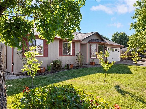 This 3 bed 2 bath 1460 SQFT charmer sits on a .16 AC corner lot in Central Point and boasts a well landscaped and private backyard with multiple storage sheds. Inside, notice the vaulted ceilings, pot shelves and open concept floor plan. The kitchen has stainless steel appliances(Fridge included) and is open to the dining and living room. The master bedroom is spacious with a ceiling fan and 2 walk-in closets. Recent updates include: New roof in 2023 and exterior paint in 2022. The 2 car garage is finished, has an insulated door, laundry sink and the washer/dryer are included.Schedule a tour today!