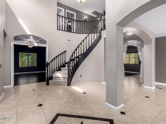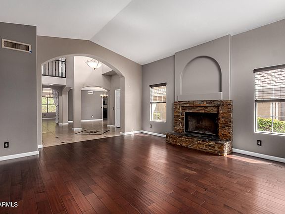 Beautifully maintained 4 bed, 3 bath home with office/flex space and theater room in desirable Val Vista Lakes! This 3,056 sq ft home features inlaid ceramic tile, oversized windows, custom fireplace mantle, and surround sound in the main living area. The chef's kitchen includes reverse osmosis and smart lighting upgrades. Upstairs, enjoy a spacious primary suite with a fully remodeled spa-like bath, dual vanities, soaker tub, and walk-in closet. New carpet (2025) throughout the upper level.