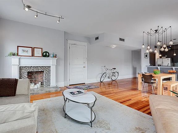 A non-active fireplace serves as a stylish focal design element, adding character to the living space. Additionally, both bedrooms are large and can accommodate king beds, and feature large closets, ensuring ample storage. The entire condo is enhanced by tall ceilings, creating an open and airy atmosphere. There's also a small back courtyard where residents can relax. Street parking is abundant but there is a parking lot right behind the unit. Let us know if you want information about renting a spot there!