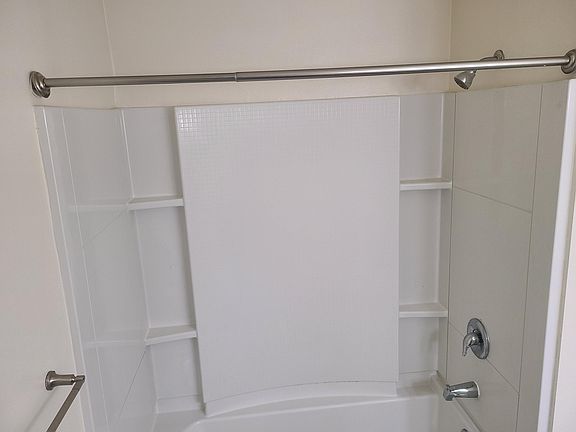 New white shaker cabinetsNewer appliancesQuartz countertopsPlush carpeting floors