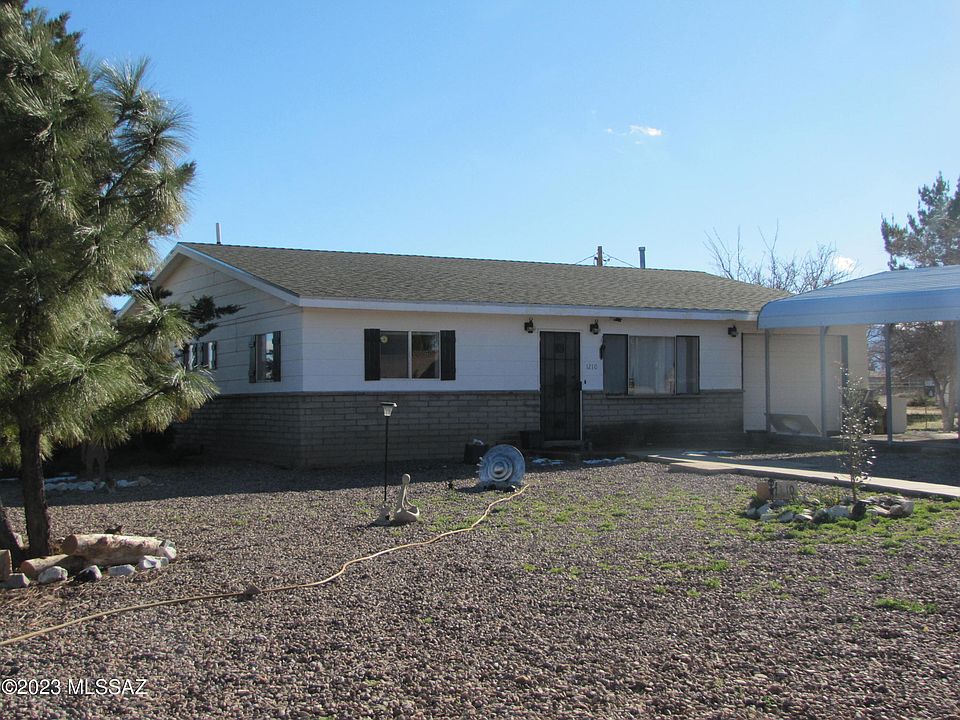 Plenty of room in this 3BR/2Ba home. First guest BR and Ba adjacent to living room. Walk-in tub in guest Ba. MBR suite off kitchen. Breakfast bar, skylight and pantry in kitchen. Formal dining room or family room thru sliding door next to kitchen.; mountain views from this room. AZ room opens onto uncovered slab in backyard. One-car garage has furnace, water heater and washer/dryer. Huge carport off garage. Full RV hook-up on west side of garage. Second guest BR has private entrance from backyard. Large shed with concrete floor and electric in backyard that is fenced and cross-fenced including 2 double gates. Chicken run and coop in back; alley access. Numerous fruit and nut trees as well as grapes in backyard, most with irrigation system.