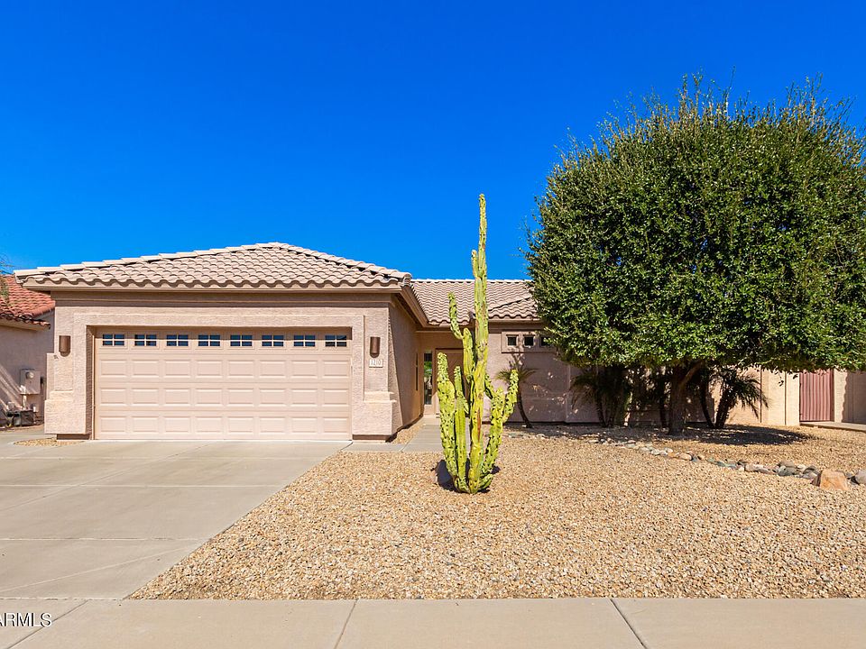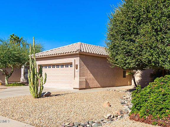 Welcome to this updated single-level home in the gated Active Adult Springfield Community! Discover a desirable open layout designed for effortless entertaining! Tons of natural light complemented by neutral paint & tile flooring w/carpet in bedrooms. The kitchen boasts built-in appliances, granite counters, travertine backsplash, center island, & pantry. Double-door main bedroom has an ensuite with dual sinks & a walk-in closet. Secondary bedroom, with a window seat, can be an office. Extended laundry with a window & room for a desk or craft area. Spacious back yard with a full-length covered patio & additional patio area, finished concrete & 3 citrus trees. Enjoy 2 pools, spa, golf course, tennis, pickle ball, gym, bar/grill & tons of activities.