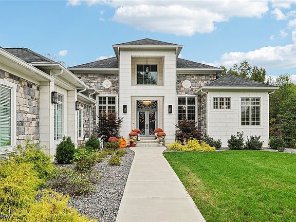 Truly one of a kind. Spectacular Stone Ranch style home with walk out basement. Over 8,500 square feet of living space. Beautiful windows, and soaring ceilings, showcase an inviting open floor plan. An unbelievable amount of space for entertaining guests and family. So many quality upgrades. Gourmet kitchen with quartz counter tops and large island. There is also a separate bar sink. Plan allows for eating area in kitchen and a gorgeous formal dining room. The spacious sun room overlooks rear yard and has an indoor grill with exhaust and eating area. All bedrooms have beautifully appointed baths. Main level 4th bedroom, is set up as sitting room with built ins. Large office rounds out the first floor. The lower level has 5 th bedroom and full bath. For entertaining there is a second full kitchen, dining room, full bar and wine cellar. There are 3 furnaces and 3 Air conditioners. Basement also has radiant heat in the floor. So much to see!