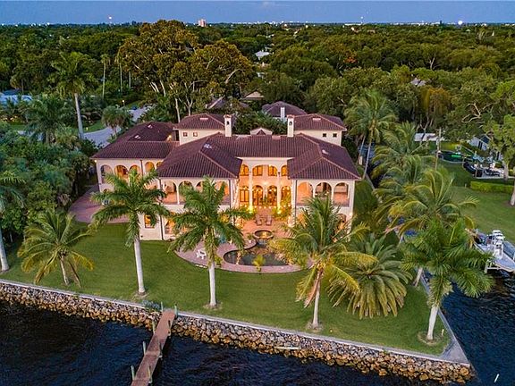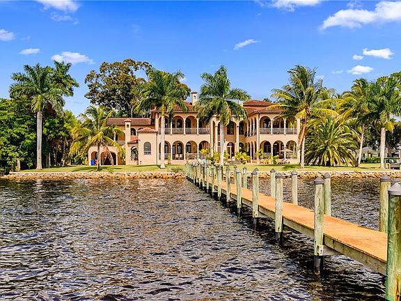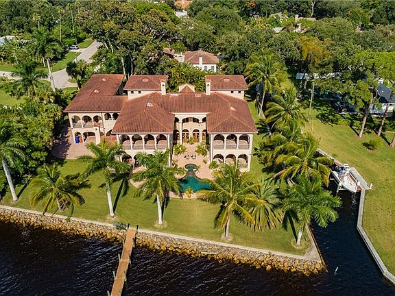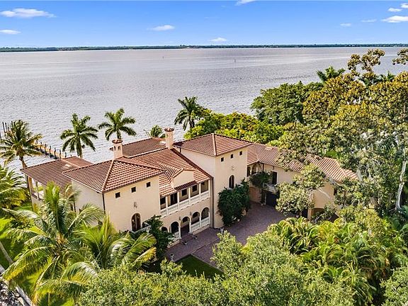 Gorgeous riverfront estate in Fort Myers. 3 story home of Tuscan design, 8,600sf of AC living space, 15,000sf overall. Perfect home for a large family with 6+BR & 8 BA. Designed by famed, residential designer Bud Lawrence and built in 2009. Features: 3 tiered theater room with wet bar, 850sf eat in kitchen, 500sf great room rising 28ft to the chandelier & beamed ceiling; wood burning fireplace; exercise room; 3 stop elevator; 11" wide interior walls of textured plaster and 12' high ceilings give a massive feeling to the interior. Work at home with 1,000sf of office space with hand carved wooden pub bar and fortified hurricane suite. Alternatively, the home office and adjoining hurricane suite can be a 1 bedroom, 1.5 bath 1,500sf private apartment with separate entrance, for an in-law or adult child returning to the nest. 5 AC units and standby generator. Fishing pier/dock that extends 200ft into the river! 5,000sf of outdoor living with a pool, spa, gas fireplace, courtyard and outdoor kitchen. 175ft of riverfront plus 197ft on the Carrell Canal. 3/4 acre lot is gated & fenced with monitored security providing privacy and security. The family will enjoy for generations!