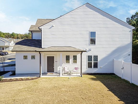 Beautiful End Unit Town House in centrally located Page Square. Enjoy gorgeous views of the protected areas in front and in back of the property. First floor of home has an office and sunroom, 2 car garage with overhead storage. Upstairs has 3 large bedrooms, laundry room, and luxurious master suite. LVP throughout the first floor, hardwood tread stairs, and partially fenced in back yard. Gas stove. Enjoy easy access to RTP, 40, 540, and Brier Creek. Shopping, Dining, and Entertainment nearby.