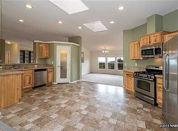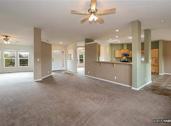 All the privacy acreage affords within ten minutes from the freeway and another ten minutes to downtown Reno. The home is perched high above with beautiful 360 degree views and BLM access. The lot has amazing horse property potential. This home has many green features including solar tubes in all bathrooms and the master closet, green house ventilation throughout and an IBC block foundation creating an R-56 rating in the crawl space.