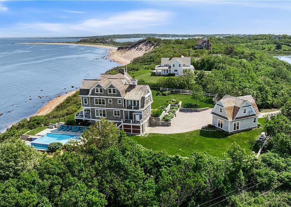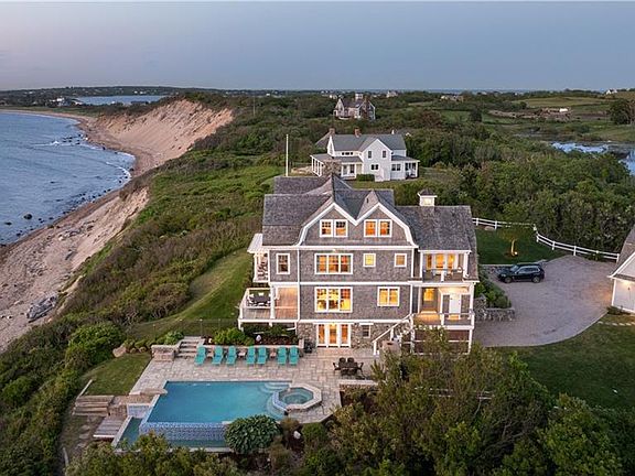 Coastal Elegance on Block Island’s West Side. Commanding a premier waterfront setting in the sought-after Grace’s Cove area, this exceptional coastal estate on Block Island’s west side seamlessly merges timeless New England architecture with a complete, high-end renovation, offering a level of privacy and quality rarely available on the Island. Set above the shoreline with uninterrupted views across the Sound and out to the mainland, the residence has been meticulously reimagined with curated finishes and advanced performance features throughout. The interior embraces a refined coastal aesthetic—hardwood flooring, custom millwork, tailored cabinetry, and designer lighting all working in harmony to create an atmosphere of relaxed sophistication. Expansive main living areas are bathed in natural light, with walls of glass and French doors opening to an array of outdoor living spaces, including ocean-facing verandas, a fire-lit terrace, and a dramatic infinity-edge pool and spa suspended above the sea. Designed for both effortless entertaining and quiet retreat, the home flows seamlessly between indoor and outdoor spaces. Private bedroom suites offer tranquil sanctuaries with sweeping water views, blending comfort and elegance at every turn. From sunrise reflections to glowing sunset skies, this extraordinary property offers a rare front-row seat to the natural beauty of Block Island—where luxury meets the enduring spirit of the coast, and every day feels like a getaway.