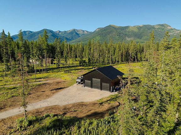 Back on market at no fault of Seller's. Seize 5 acres of unrestricted Bigfork paradise—no HOA—ideal for horses, livestock, or lush gardens! Nestled within a robust 40x40 shop featuring insulated garage doors, discover a 1,600 sq ft 2-story living space (20x40)—a near-complete gem with infrastructure already in place: well, septic, 400 AMP electrical, driveway, & RV pad. Priced far below the cost to reach this build stage in today's market (median $794K), it's an unbeatable value! Revel in 3 beds + loft upstairs, plus kitchen, living room, & bath downstairs, all showcasing breathtaking Jewel Basin Mountain views through a sleek glass garage door. Transform into a dream barndominium: swap 3 garage doors for windows & entry, add a patio overhang for just $5K-$10K—way less than new construction. Or finish with trim & paint for a high-return Airbnb. The half-drywalled shop is perfect for hobbies or storage. Embrace your Montana vision on this private haven—endless potential awaits! Tour now