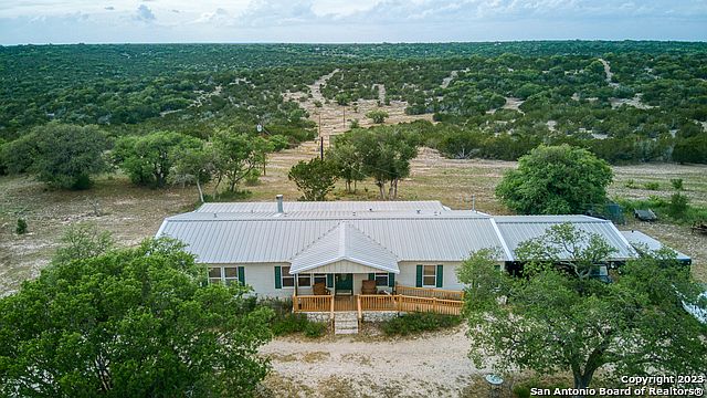 Amazing Access and under 40 minutes to Kerrville and 20 minutes east of Rocksprings, and 90 minutes to San Antonio. Only 1.2 miles off HWY 41 on an excellent road. No POA dues and very few neighbors on private road with a very large ranch at end of road. High speed internet is on the property so this could be your next work from home space. Property is ready to go with a 3/2 Manufactured home with a fireplace that has many recent updates including a jacuzzi tub in the master bathroom and a fabulous addition that allows you to see amazing views out the many windows from the back sunroom. The 2 guest bedrooms have been opened to make one large room but can easily be made into separate rooms again with an addition of a door. Closets are spacious and lots of storage available. Most of the furniture and appliances convey so this is move-in ready. There is an adjacent 2 car carport to keep the weather off your vehicles and there is also a 1260sf metal shop with roll up doors that has a studio apartment with kitchenette and full bathroom inside for guests. The shop has a loft area as well that could be finished out for more living space or used for storage. The possibilities are endless. Wildlife is abundant to include axis deer, whitetail deer, turkey, aoudad, fallow deer, hog, sika deer, elk, and blackbuck. The native vegetation includes pinion pine, mountain laurel, oaks, Texas persimmon, and cedar. There are numerous roads cleared for ATV use that makes the entire property accessible. Boundaries are clearly defined as well, with 2 sides having 4 strand fence or one strand fence. There are 4 feeders and 3 watering stations that all convey as well as the 5x7 tower blind. Must see this property to appreciate how well it is laid out with the rolling hills and diverse landscape.