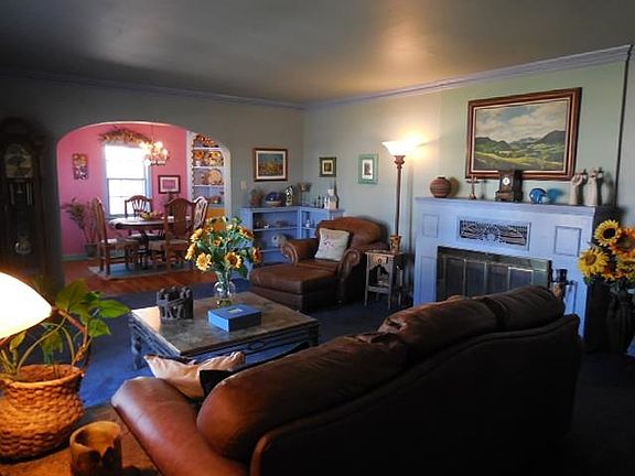 Cute, Cute, CUTE! Living room has wood burning fireplace, crown molding & built-ins! Great storage in this older home! Great kitchen w/50's appeal. Updated main bath w/whirlpool, + 1/2 bath, & spacious 3/4 bath in guest house/shop in oversize garage. Beautiful yard & dog run for an elephant. Newer gas line & garage doors, roof 5 yr. on house & garage per owner. Portion of garage can be used as guest house w/nice 3/4 bath NOT included in square footage. All sewer lines/plumbing has been replaced per owner.