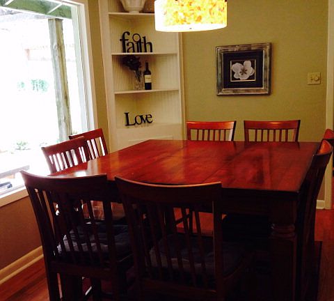 Charming mid-century ranch home with original gleaming hardwood floors. Kitchen just updated with designer materials. Baths recently updated. Large bedrooms have walk-in closets with built-in storage. Grand lodge-style family room has a vaulted ceiling and massive fireplace. French doors lead to a gorgeous backyard with mature trees and pergola-covered patio.