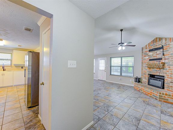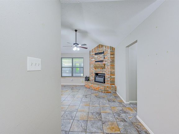 Tucked in a quiet, established neighborhood, this charming one-story offers smart upgrades and flexible space. The open living area features a cozy brick fireplace and flows into an updated kitchen with stainless appliances. A dedicated office/flex room adds extra versatility. The spacious primary suite includes dual sinks and great storage. Enjoy year-round use of the enclosed back patio/sunroom, perfect for relaxing or entertaining. Outside, the large fenced yard is easy to maintain and comes equipped with leaf guard gutters, a whole-house generator, and fully paid-off solar panels to keep utilities low and power secure. No carpet in main areas and move-in ready with room to personalize. Hard to find this much value at this price!