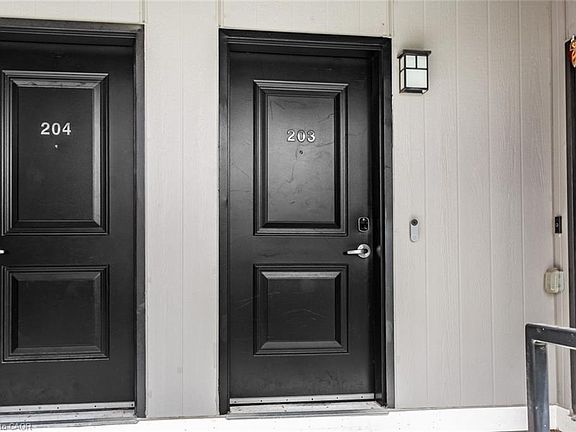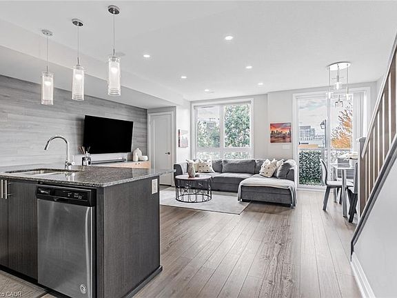 Welcome To 1210 Main St E #203, A Rare Find In Milton With Two Side-By-Side Parking Spaces & An Oversized Locker! An Exceptional Upper-Level Stacked Townhome Located In Milton's Highly Sought-After Dempsey Community. Offering 2 Bedrooms, 3 Bathrooms, And Nearly 1,400 Sq. Ft. Of Beautifully Designed Living Space, This Home Stands Out With Two Premium Side-By-Side Parking Spots And A Double-Size Locker A True Rarity In The Area. Step Inside To A Welcoming Foyer Leading To The Bright Main Level, Where 9-Ft Ceilings, Pot Lights, And An Open-Concept Layout Set The Tone For Modern Living. The Chefs Kitchen Features Granite Countertops, Stainless Steel Appliances, Subway Tile Backsplash, And A Centre Island With Extra Storage Perfect For Both Daily Use And Entertaining. The Sun-Filled Living Area, Enhanced By A Custom Accent Wall, Opens To A Private West-Facing Balcony Ideal For Relaxing Evenings. A Convenient Powder Room Completes The Main Floor. Upstairs, You'll Find A Spacious Primary Suite With A Walk-In Closet And 3-Piece Ensuite, A Generous Second Bedroom, A Full Common Bath, And In-Suite Laundry For Added Ease. Perfectly Situated Near Top-Rated Schools, Parks, Trails, Shopping, Milton GO, And HWY 401, This Property Combines Comfort, Convenience, And Style. Bring Your Fussiest Client, This One Truly Checks Every Box!