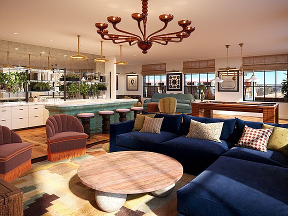 Antique brass hardwareTerraces overlooking wedgewood villageIndustrial-inspired windowsIvory or green finishesHigh ceilings