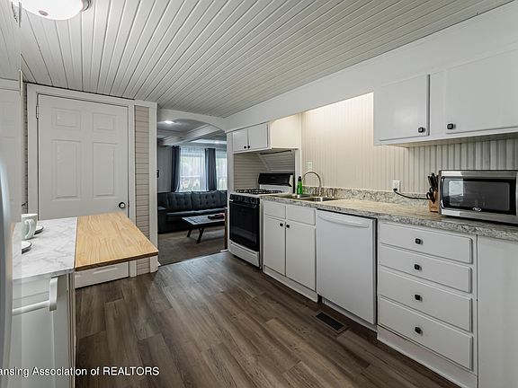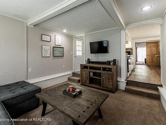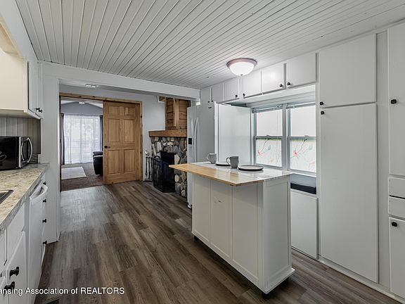 You have to see inside this 3-bedroom home to appreciate the remodeling work that has been done! This home has fresh paint throughout, new flooring and vinyl plank flooring, a new furnace, and a new water heater. Vinyl windows, vinyl siding, and a freshly stained deck. The living room is large and connects to the kitchen with an eat-in dining area with a fireplace! The primary bedroom is in the back of the house with access to the fenced-in backyard. The bathroom has new floors and new vanity. Two additional bedrooms are upstairs. The lot is 100 yards deep with lots of trees. Very close to Biggby!!