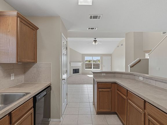 Beautiful two-story home featuring four bedrooms, two and a half bathrooms, and a two-car garage. The kitchen offers a spacious island bar, pantry, and open layout to the living area with a cozy fireplace. Upstairs includes a versatile loft, a primary suite with bay window, double vanity, separate tub and shower, plus another bathroom with double sinks. The wood-fenced backyard provides privacy and space for outdoor enjoyment.