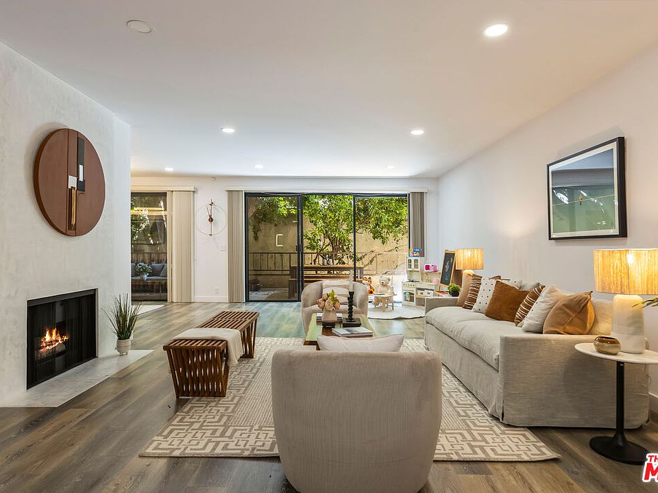 Experience a rare true gem in prime West Hollywood is 1210 N Kings Rd unit 101. A designer-crafted 2,500 sq ft showplace with an incredible oversized approximately 433 sq ft outdoor terrace. Every detail of this residence has been thoughtfully curated for style, comfort, and functionality. Flooded with natural light, the indoor outdoor open-concept layout flows effortlessly perfect for gatherings or evening entertaining. Warm tone floors, and designer-selected fixtures create a sophisticated vibe throughout. The living room features a sleek gas fireplace, a built-in wet bar, and expansive sliders that blur the line between indoor and outdoor living. The adjacent gourmet kitchen boasts custom cabinetry, premium stainless steel appliances, and ample counter space for a home chef. The primary suite is a serene retreat with a generous separate his and hers walk-in closet. Enjoy a spa-inspired ensuite bathroom complete with an oversized tub and glass-enclosed shower. Thoughtfully positioned within the building for maximum privacy, this unit offers two dedicated parking spaces. You're just steps from shopping, a diverse array of eatery, vibrant nightlife, and much more.