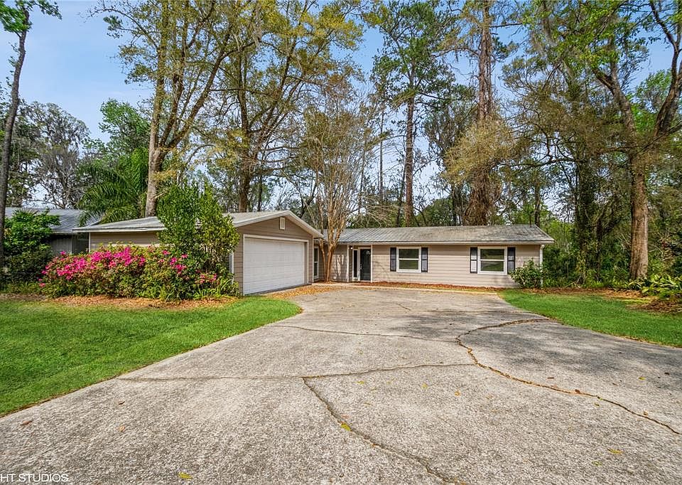 Fabulous Find on Hogtown Creek! Looking for a peaceful setting? This classic ranch style 3 bedroom/ 2 bath home is situated on a nicely wooded .47 acre lot backing up to the creek. Interior renovation includes all new luxury vinyl plank flooring, new bathroom and kitchen cabinetry with granite countertops, dual sinks in owners bath with new tiled shower & fresh paint. Property features a long driveway with a spacious courtyard style attached 2 car garage and rear deck overlooking wooded surroundings. This is a Fannie Mae HomePath property.