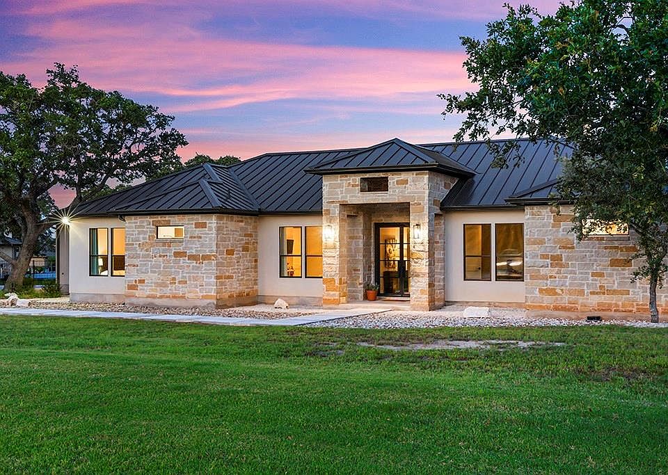 An expansive Hill Country retreat with a timeless design driven interior. Open concept modern, transitional custom build by the highly regarded TLP Construction. The foyer welcomes you with 10 ft - 14 ft ceilings and a custom iron and glass french door. Custom cabinetry adorns the eat in chef's dream kitchen anchored by a substantial island with plenty of storage. 8 ft wood doors and 4 panel slider invite the outside in with over 450 sqft of additional outdoor living.