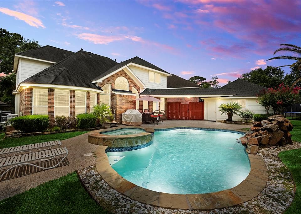 Charming home w/ POOL/SPA on a quiet cul-de-sac w/ a VIEW of Sotherloch Lake & has BRAND NEW SUBWAY TILE BACKSPLASH & QUARTZ COUNTERS IN KITCHEN & PRIMARY BATH. This lovely home has an inviting foyer, high ceilings, wood/tile floors downstairs & laminate wood upstairs, no carpet anywhere. Large open kitchen has 42\" white cabinets w/ lots of counter space & storage, plus huge laundry room w/ folding table. Family room has floor to ceiling windows overlooking the backyard oasis plus gas log fireplace that anchors the space. Primary bedroom is oversized w/ bay window & the bathroom has double sinks, large walk in closet, jetted tub & new frameless glass shower. Upstairs boasts a gameroom, 3 more bedrooms & 2 full baths. Step outside to your serene backyard retreat that has large patio, pool/spa & rock waterfall, plus plenty of room left over for pets/playground/trampoline. Enjoy the waterview of Sotherloch Lake which has catch & release fishing, shaded walking trails & park/playground.