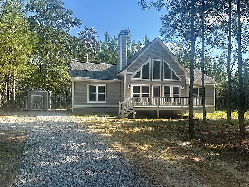 NEW CONSTRUCTION located conveniently on Oconee Springs Road only 10 minutes from lake Oconee and 10 minutes from Lake Sinclair. This 3 bedroom 2 bath home is situated on 10 +/- acres of planted pines and hardwoods. The Vaulted Ceiling in the great room provides a generous amount of natural light and creates an open living area connected directly with the kitchen and dining area. This split design has a large Master En-suite that features a large master bedroom with his and hers vanities and closets and boasts a beautiful walk in shower. Two additional bedrooms share the second full bathroom. Set back in the woods. Every room in the house delivers a beautiful wooded view. Custom cabinets with granite countertops and island set off the kitchen. A large front deck allows for quiet picturesque evenings and a grill deck on the back allows for easy access grilling. Finally, a utility room with washer/dryer and sink proves excellent utility. All new appliances. APPOINTMENT ONLY. Buyers agents welcome.
