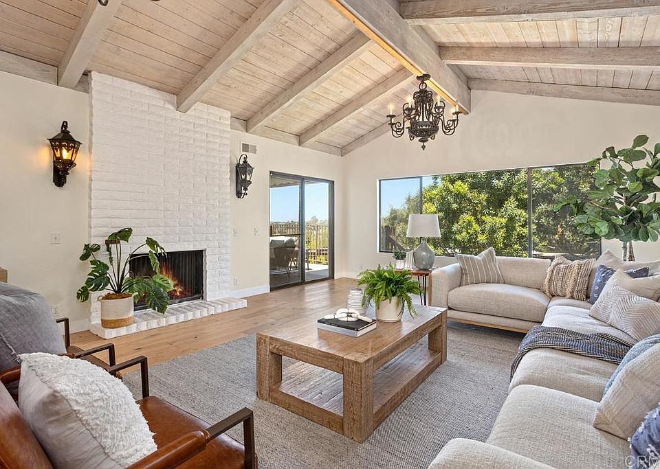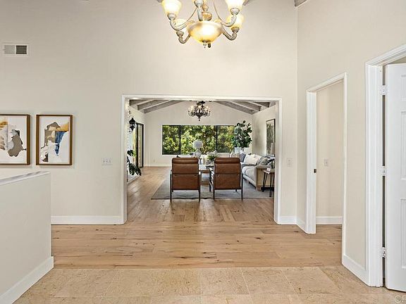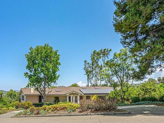 Recently upgraded and charming ranch-style home in highly-desirable Escondido neighborhood. This home checks a lot of boxes: Views, single story, paid solar, 2 driveways, just under an acre of usable land, ADU, fruit trees, no HOA, RV parking, and more. This 4 bedroom, 4.5 bath (+attached in-law suite/ADU/guest) home includes over 3,100+ Sq Ft situated on a large gentle lot with beautiful scenic views and great outdoor space. The home is equipped with paid solar panels, providing great monthly savings. The rooms are filled with natural light, some vaulted ceilings, and two fireplaces. The spacious living room and kitchen is the perfect space to entertain family and friends. The private master suite includes a balcony overlooking the backyard, a large walk-in closet and an ensuite bathroom. A guest bedroom includes an ensuite bathroom with a shower. Two additional bedrooms share a full bathroom with a shower/tub combo. A lower-level in-law suite / ADU is perfect for additional income or additional living for a home office or playroom. The space features a kitchen, bathroom, living area, studio bed, separate entrance and parking. The property offers multiple outdoor spaces to enjoy including a deck overlooking fruit trees, large grass area, drought tolerant landscaping, storage shed, work shop, treehouse. City-close but rural enough for your chickens too.