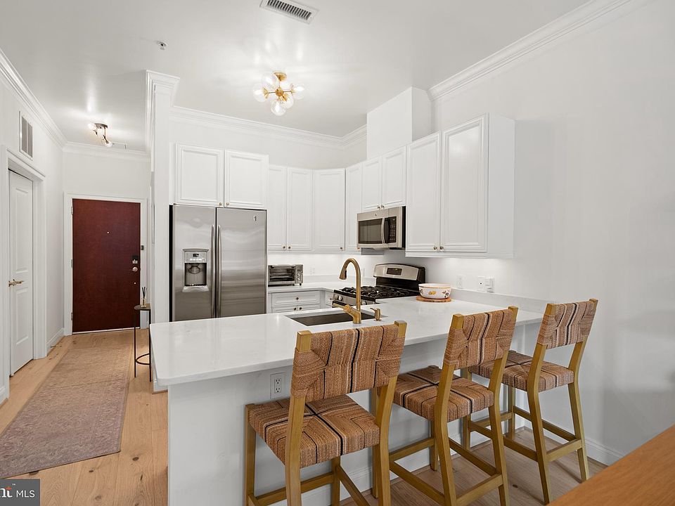 Welcome to this warm and inviting residence in the highly sought after Logan Station Condominium. This home boasts brand new wide plank wood floors and airy 10-foot ceilings that create an open and inviting atmosphere. The living and dining area seamlessly connects to a large kitchen, featuring stainless steel appliances, quartz countertops, and ample storage. An upgraded HVAC system ensures year-round comfort and efficiency. The home boasts expansive storage with one walk in closet, a large coat closet, a large secondary closet, and more! Enjoy abundant natural light from the south-facing private balcony. You'll be immersed in the vibrant atmosphere of DC, with beloved spots like Le Diplomate and a wide array of restaurants, bars, and shops. This ideal location offers coveted parking and a private outdoor space. This building is pet-friendly and includes the convenience of an elevator.