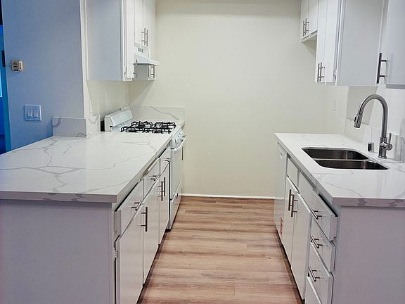 * Renovated kitchen with granite countertops, new sink and faucet, freshly painted cabinets, new dishwasher, breakfast bar and new hardwood laminate flooring.