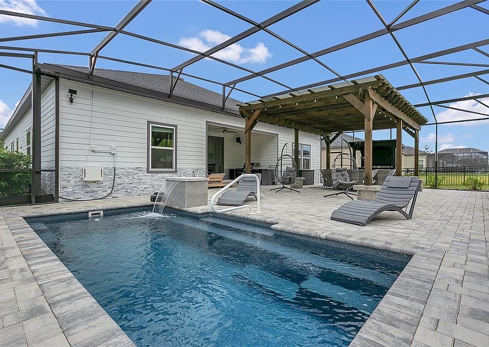 Welcome to Bellechase, one of Ocala’s most exclusive and sought-after guard-gated communities, known for its winding streets, mature oaks, and peaceful atmosphere. This stunning corner-lot, 4-bedroom, 3-bath home with a bonus flex room is the perfect blend of elegance, comfort, and Florida living at its finest. Every inch of this property has been fully upgraded, offering a home that feels brand new from the moment you pull into the full paver driveway, framed by lush professional landscaping and custom stonework that gives the home incredible curb appeal. Inside and you’re greeted by an open floor plan designed for today’s lifestyle. The spacious living area flows seamlessly into the heart of the home — a modern, fully upgraded kitchen with new stainless-steel appliances, custom cabinetry, and upgraded lighting throughout that ties everything together. The flex room, just off the main space, is perfect for a home office, formal dining area, or playroom, giving you the versatility to make the space fit your family’s needs. The primary suite is a true retreat, featuring a spa-inspired bathroom with double vanities, a soaking tub, and a large walk-in shower. A second ensuite bedroom provides the perfect setup for guests or in-laws. Throughout the home, you’ll find modern lighting upgrades inside and outside, beautiful flooring, and attention to detail that brings a clean, fresh look to every room. Outside you'll see what makes this home truly one-of-a-kind. The expansive outdoor living area is designed for year-round enjoyment—whether relaxing with family or entertaining guests. Enjoy your brand-new saltwater pool, surrounded by a fully screened patio and an oversized pergola-covered area perfect for lounging in the shade. Fire up the outdoor kitchen for weekend barbecues, gather around the custom fire pit on cool evenings, and take in the resort-style landscaping that surrounds the entire property—a $50,000+ investment in landscaping alone! Additional features include an EV charger hookup in the garage, modern new exterior lighting, and the peace of mind that comes with living in one of Ocala’s most desirable and secure neighborhoods. Bellechase offers wide streets, beautiful walking paths, and a true sense of community, all just minutes from top-rated schools, fine dining, shopping, and some of Central Florida’s most beautiful natural areas. This is more than just a home — from the high-end finishes to the amazing outdoor spaces, every detail has been designed for comfort, style, and lasting enjoyment. Don’t miss your chance to own this incredible property in Bellechase — homes like this do not come along often!