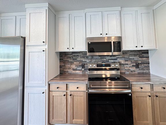 Welcome to the Coral Bay-a beautifully crafted new home designed for comfort and modern living. Enjoy outdoor relaxation on the charming 6' full front porch and take advantage of the carport with gutters and an 8x8 shed with a window for extra storage. This home includes irrigated landscaping including St. Augustine Grass! Inside, you'll find walk-in closets, a luxurious tiled master shower, and an electric fireplace that adds warmth and style to the spacious living area. The kitchen features a center island with a sink, over-range microwave, and a full stainless steel appliance package-all perfect for everyday living and entertaining. This home also includes irrigated landscaping including St. Augustine Grass! Additional highlights include central air and an Ecobee smart thermostat for efficient climate control. Thoughtfully designed with both comfort and functionality in mind, Coral Bay is the perfect place to call home.