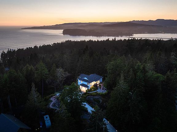 BREATHTAKING OCEAN & OLYMPIC MTN VIEWS are equalled only by this custom, 2017 built, 4 bed, 3 bath, 2,735sf, executive home on a private (gated entry), beautifully treed & masterfully landscaped 2.35ac/102,366sf in Prestigious Silver Spray, the premier development in super natural East Sooke. Step thru the front door & your gaze will be drawn to stunning ocean & mtn views, fine finishing details & gleaming floors awash in light thru a profusion of picture windows. Gourmet kitchen w/quartz counters/island, stainless steel appls & walk-in pantry. Inline dining rm is perfect for family dinners. Living rm w/cozy propane fireplace opens to view balcony. Primary bed w/walk-in closet & opulent 5pc ensuite. 2nd bedroom, 2pc bath & laundry complete main lvl. Down: 2 more bedrooms, family rm opening to view patio, wet bar, 4pc bath & storage. Enjoy outdoor living w/over 1300sf of decking/patio (incl lower patio w/firepit), sports court, heat pump, dbl garage & lots of parking. Simply Perfection!