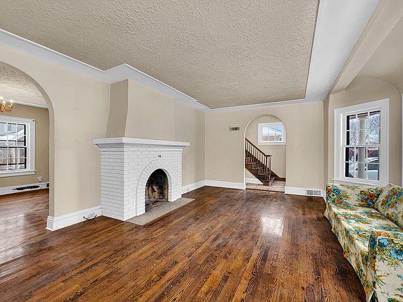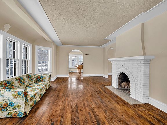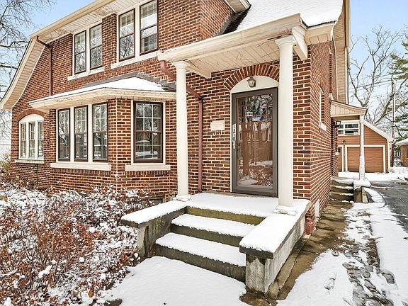 All brick 2 story tudor home on beautiful tree lined street. Offers vintage charm with 3 bedrooms and 2 full bathsand 1 half bath. Main floor has large living room with fireplace and large bay window. Beautiful sitting room on main floor with tons of windows and a formal dining room. Full basement partially finished with fireplace and bathroom. Lots of storage in basement. Gorgeous hardwood floors through out most of the home. 2 car detached garage. Schedule a showing today! Selling AS IS