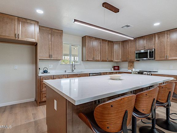 Prime Tempe Location - 3 Miles from ASU! This is a completely remodeled 3 bed/2 bath home with a bonus area and large laundry room! Enjoy luxury vinyl plank flooring throughout the open concept floor plan. The designer kitchen has brand new custom cabinets (33 cabinets & 16 drawers) with soft close, quartz countertops, stainless appliances, and a huge island with bar seating. Bathrooms have new tiled showers, vanities, fixtures, and toilets. More upgrades: new dual pane windows, doors, garage door, water heater - even the paint & drywall texture are done. Roof & AC were replaced from 2020 -2021. Extras include Nest Thermostat, Ring Doorbell & Surround Sound. Best of all, there's no HOA, and the home sits on a cul-de-sac with desirable North/South exposure, epoxied cover patio & an RV Gate