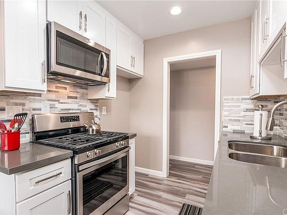 Immaculate, Updated and Beautiful 2 Bedroom and 1 Full Bathroom Condo in Highly Sought After Woodlake Village Community. This Ground-Level Condo offers an Open Floor Plan with Upgrades that include New Laminate and Tile Flooring, Scraped Smooth Ceilings, New Paint, New White Shaker Kitchen and Bathroom Cabinetry with soft self-closing feature, Quartz Countertops, New Whirlpool Stainless Steel Appliances (Dishwasher, Gas Stove/Oven, Microwave), New Stainless Steel Kitchen Sink, Beautiful Mosaic Backsplash in Kitchen, New Tub/Shower Tile Surround with Mosaic Inlay, Walk-in Closet in Master and Second Bedroom, Central HVAC, Enclosed Patio Area, Gated Assigned Carport Parking (and parking outside), Community Laundry Onsite, Pool, BBQ Area, HOA Dues include Water, Gas, Trash and Common Area Maintenance. Short Walking Distance to Great Restaurants, Shopping and Entertainment. Orange County Living at its Finest! Water/trash is paid for by owner, electricity and internet, cable paid by tenant Automated secured parking is in gated covered garage area and assigned parking spot. Dog breed restriction and additional deposit required along with renters insurance