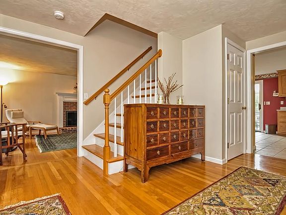 Beautiful Colonial setback for privacy close to Symphony Park. Impeccably landscaped, serene setting and ample parking for hosting family gatherings. The irrigation system makes it so easy to maintain a plush lawn. The kitchen has oak cabinets, spacious pantry, half bath with laundry hookup and sliding door leading to deck with retractable awning overlooking plenty of trees and garden. Adjacent to the kitchen is a formal dining room that opens to the living room and also a family room with a gas fireplace. Hardwood floors throughout the first floor. Second floor Master Bedroom has a walk in closet and a Master Bath. Additional three bedrooms have double closets, a full main bath with double vanity and linen closet. Hallway has easy attic access and an additional closet. Lower level has finished area for an office or playroom with plenty of storage, utility room and a two car garage.