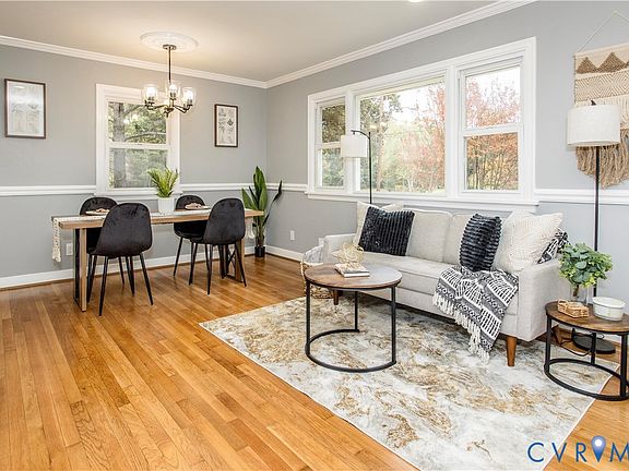 This beautifully renovated ranch home offers both comfort and convenience, situated in the popular Midlothian/Hull corridor, close to everything you need. This 3-bedroom, 1-bath, 2-car detached garage has so much to offer—step inside where every detail has been carefully considered. The entire 1212 square feet has been transformed with modern finishes that will make you fall in love. Inside, you will discover a bright and airy living space enhanced by refinished hardwood floors, NEW recessed lighting, ceiling fan, formal dining area. The ALL-NEW kitchen features sleek white cabinets, granite countertops, tile backsplash, stainless steel appliances, an island with bar seating, and built-in trash can, and stylish new lighting fixtures. The second living area has recessed lighting, a fireplace, and a closet for storage. Enjoy the nice, spacious laundry room that offers a NEW washer and dryer that will convey and cabinets for storage. A renovated bathroom boasts a NEW vanity, tiled shower, and fixtures, adding modern elegance. All 3 bedrooms have refinished hardwood floors, NEW light fixtures, fresh paint, and large closets. Don't worry about maintenance. This home's recent upgrades include a NEW 40 Year roof on the home and garage, NEW hot water heater, and NEW vapor barrier in the crawlspace, lighting in the interior and exterior, and fresh paint throughout the interior and exterior, including the garage concrete floor. Out the back door, you have a large concrete patio that will be perfect to entertain your friends and family, all while enjoying the almost 1-acre lot this home sits on. Don't miss your opportunity to purchase this GEM. Call today for a showing.