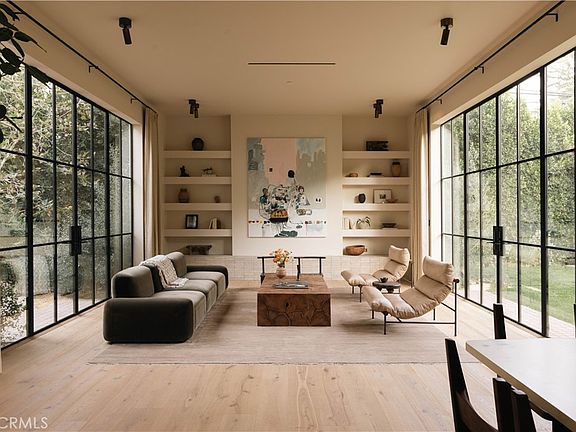 In the coveted Silver Triangle of Studio City, within the sought-after Carpenter School District, a rare architectural statement emerges—a home where craftsmanship and artistry merge into a singular vision of California living. Designed and built by Studio Rob Diaz, this newly constructed residence unfolds across 5,000 square feet on an 11,058 square foot lot, with 4 bedrooms, 4.5 baths, and an undeniable sense of presence. From the street, the orientation of shapes and textures hints at what lies within—an interplay of geometry and materiality executed with brilliance. A minimalist façade topped with Italian-imported terracotta roof tiles conceals an interior defined by warmth, restraint, and refinement. Inside, Belgian white oak floors and hand-finished Roman Clay walls soften the light that pours through soaring Euroline steel doors and floor-to-ceiling windows. Every surface is intentional, every line deliberate. Light itself is treated as art: Allied Maker pieces guide you through hallways, Roman & Williams illuminate the dining room and kitchen, Volker Haug accents the primary bedroom corridor, while the Apparatus Studio crowns the primary suite with sculptural fixtures above and in the spa-level bath. The chef’s kitchen is both centerpiece and sanctuary, anchored by Calacatta Paonazzo marble slabs, bespoke cabinetry, Spaces within hardware, Thermador appliances, a symphony of elegance and utility. The primary suite offers two private terraces, a spacious dressing room, and a bathroom where marble, dual showers, and a sculptural soaking tub invite ritual and repose. Additional amenities include a dedicated office, a wood-clad theater, Waterworks fixtures, integrated smart-home technology, Sonance in-wall speakers, EV charging, and solar panels. The exterior grounds mirror a private resort: a 50-foot black-bottom pool and spa stretch across cobblestone patios, while layered greenery and alfresco dining spaces deliver both seclusion and serenity. Perfectly positioned south of Ventura Boulevard, moments from Erewhon, The Shops at Sportsmen’s Lodge, Sugarfish, and the cafés of Tujunga Village, the home balances tranquility with accessibility. Outdoor lovers will appreciate Fryman Canyon nearby, while commuters benefit from swift access to the Westside, Hollywood, and Beverly Hills. The Hillslope estate is not just a home—it is a living composition of light, texture, and form that transforms everyday life into an experience of art.
